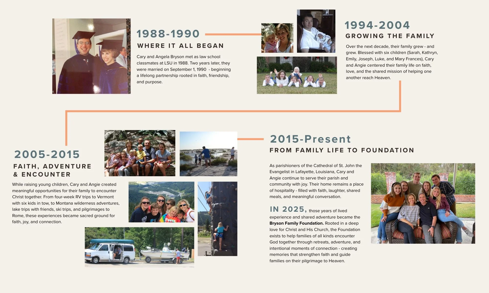 Based in Lafayette, Louisiana, the Bryson Family Foundation is deeply shaped by its Cajun roots: a culture built on faith, family, tradition, and gathering around the table.While our home is in South Louisiana, our mission reaches far beyond it. We host retreats and events wherever families are called to grow, encounter Christ, and walk together on their pilgrimage to heaven.